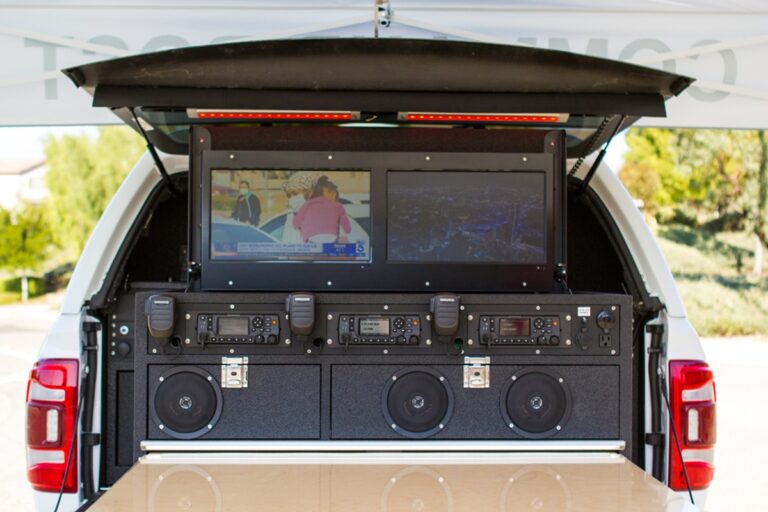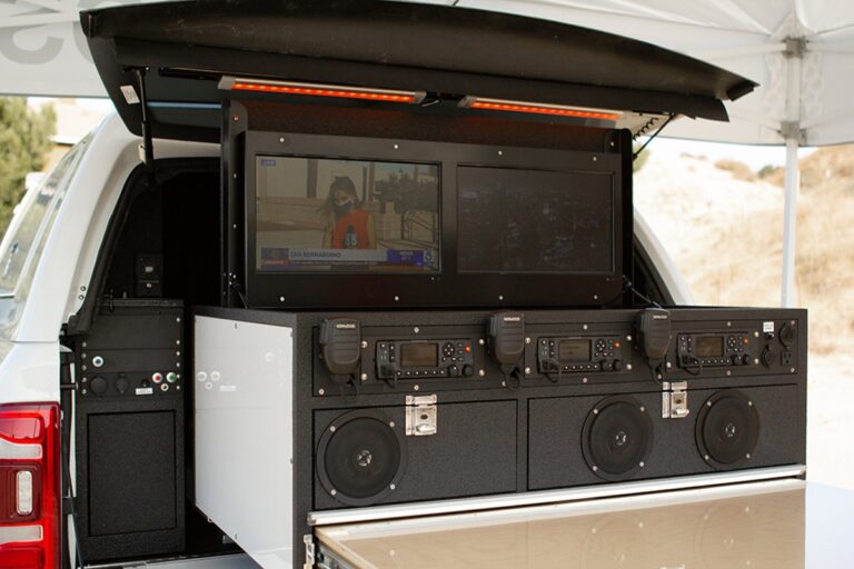 911Custom Command Cabinet with dual fixed touch screen monitors 3 Motorola APX8500 Radios 911Vehicle Intercom System Rear...