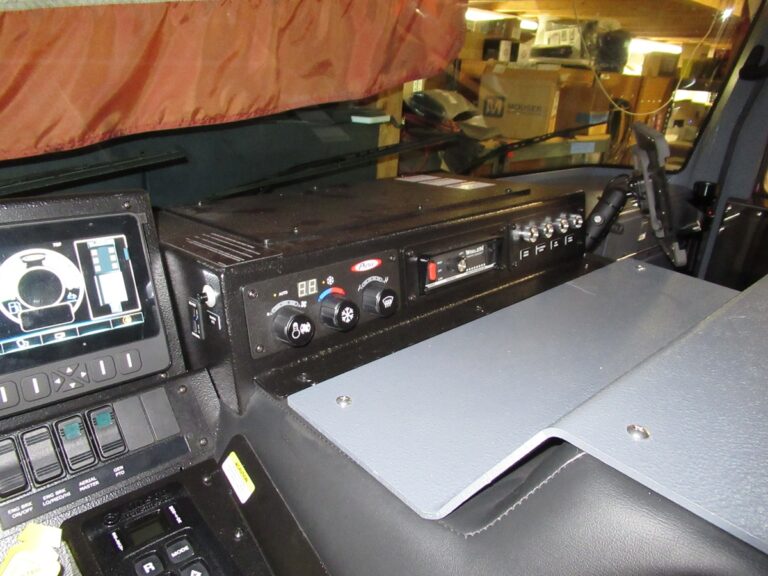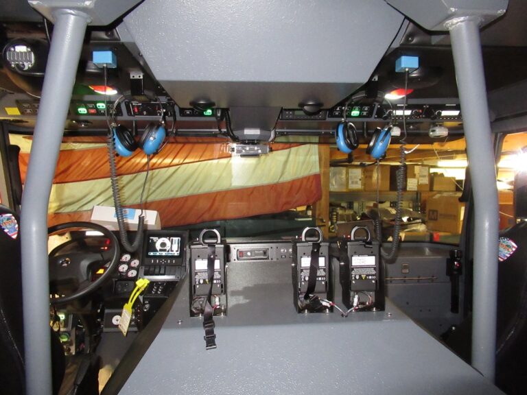 - Communications cabinet on rear wall of the cab with flip down door for easy access and service of communications equipment