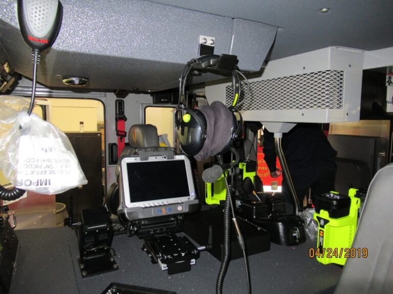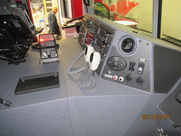 - 911Vehicle Dual Radio Intercom System with 6 interior jack stations, Pump Panel Station with dual radio transmit, and tail board station