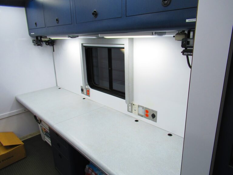 - 911Vehicle Custom Rear Command Center pull-out command desk and side cabinets