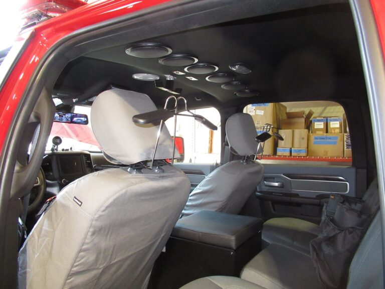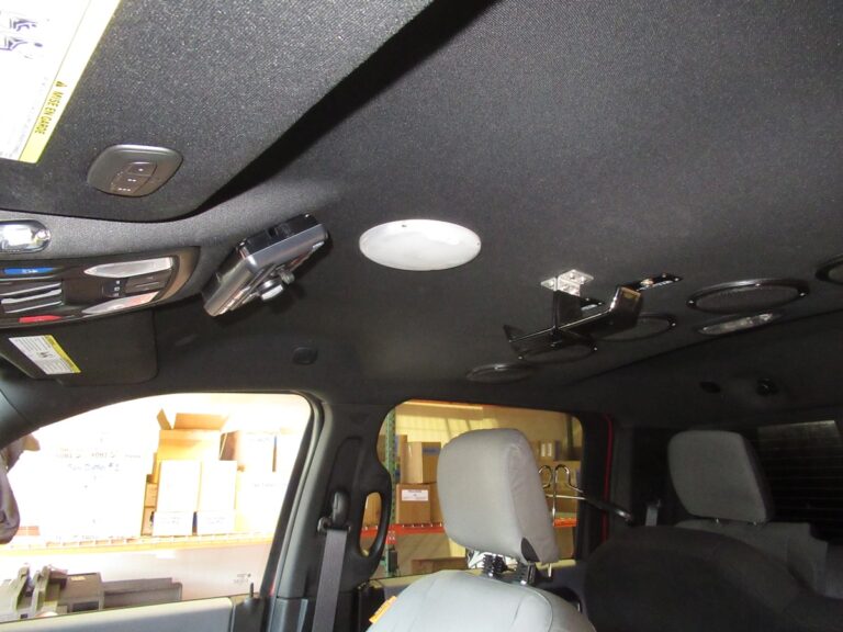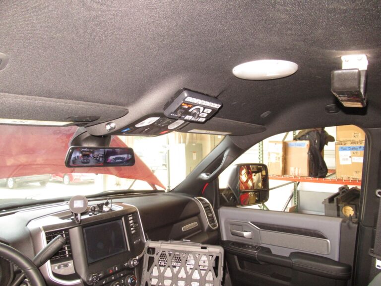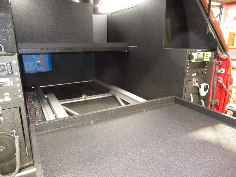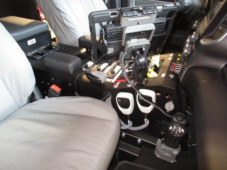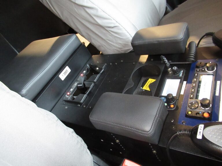 - 911Vehicle May Day Emergency Alert acknowledgment system with LEDs and acknowledgement buttons installed at the center console and rear command desk