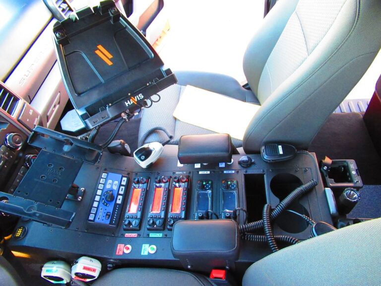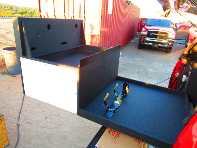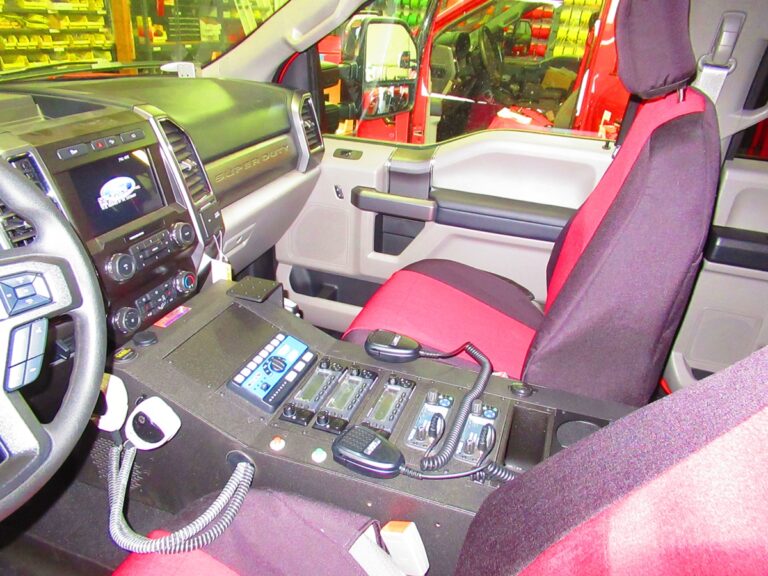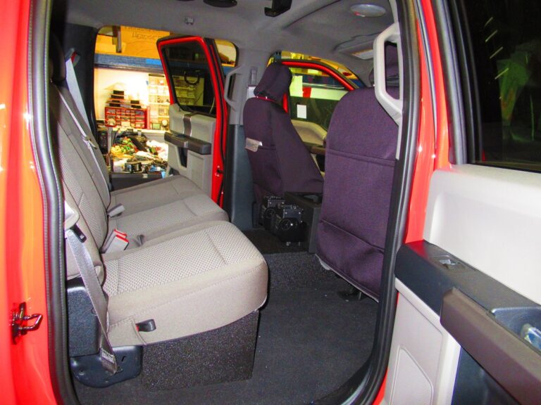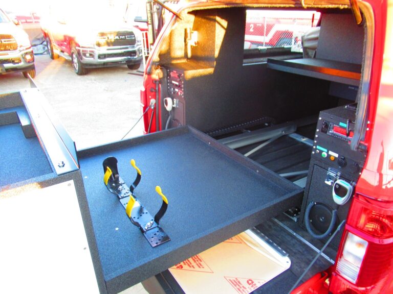 - Dual isolated AGM Batteries in the bed of the truck on a 911Vehicle custom bracket