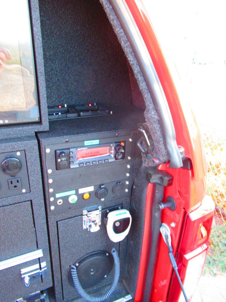 - Magnetic dry erase board on the tail gate with plexi-glass magnetic cover to allow for maps and reference sheets to be used under the plexi-glass.