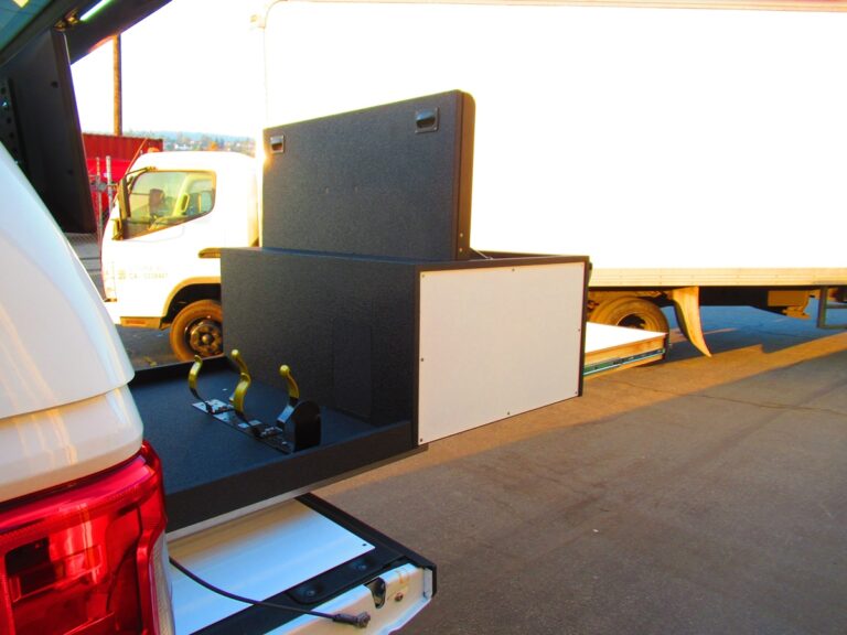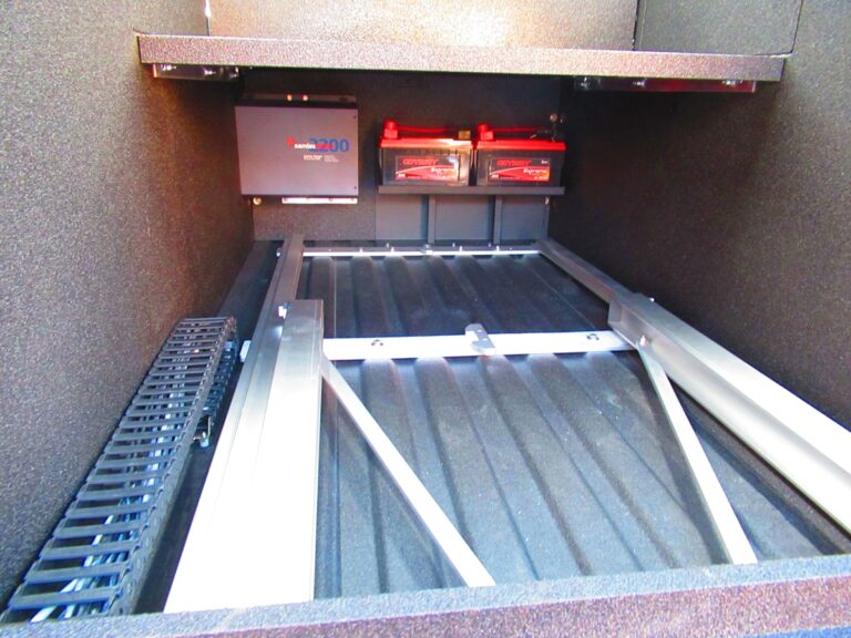 - 911Custom Command Cabinet with wall on both sides with drop down access doors, and EZ-Up Storage