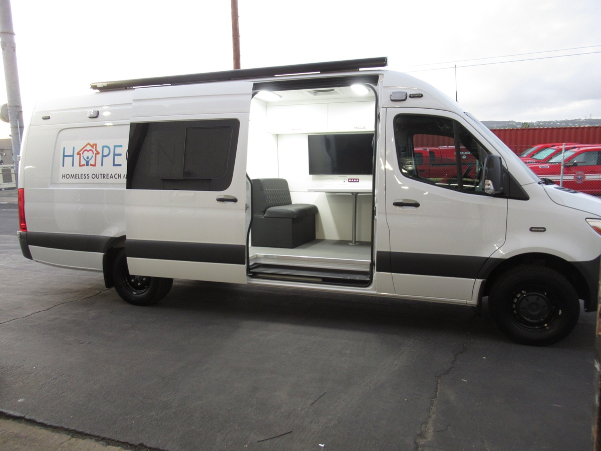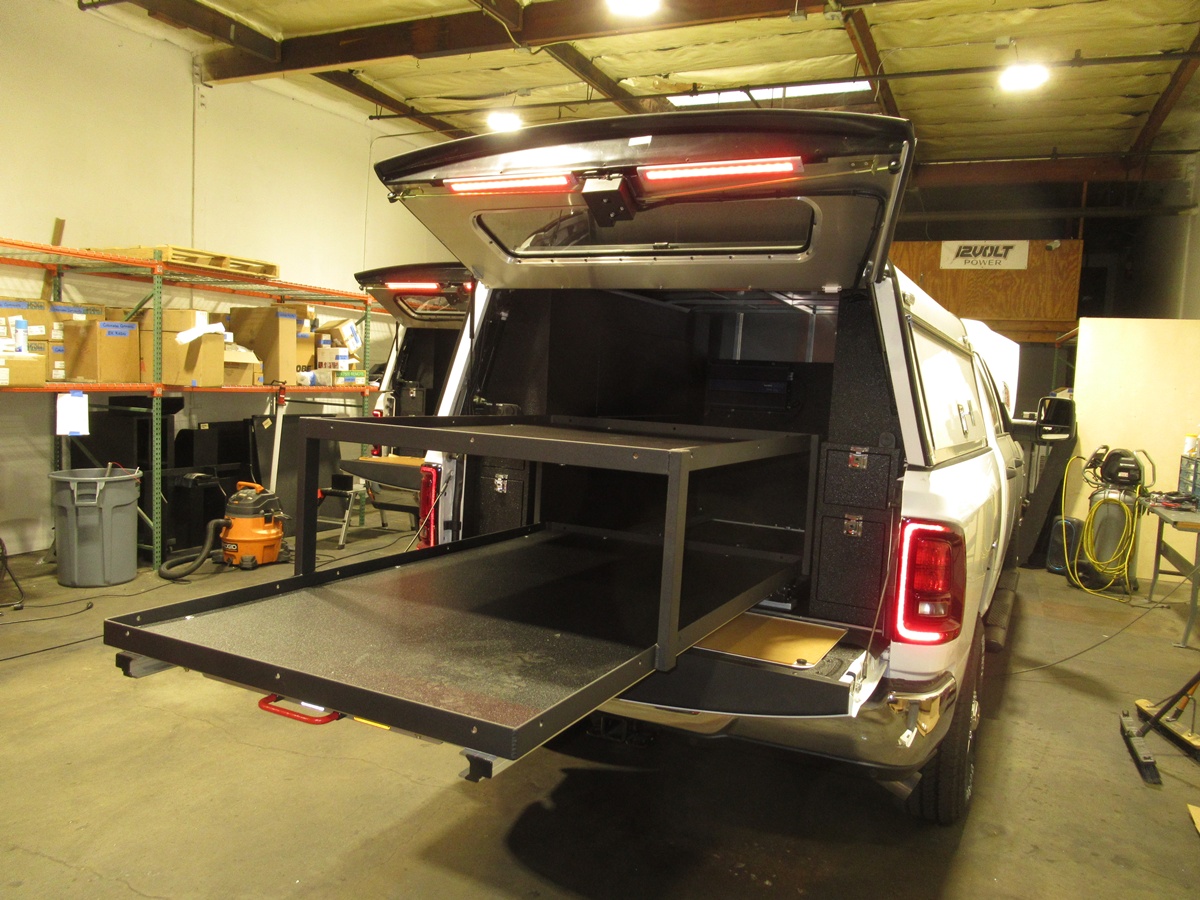911Vehicle Custom Rear Command Center pull-out command desk and side cabinets 60% seat communications cabinet 32” Rear...